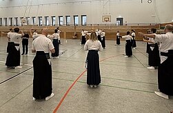 Die Gruppen blieben, wie am Vortag zusammen und arbeiteten an den Themen weiter. Diesmal allerdings mit der Vorgabe, die Kräfte bis ins Zanshin zu vergrößern und dann an einem fest definierten Punkt zu „stoppen“ und nicht die Bewegung „ausfließen“ zu lassen.