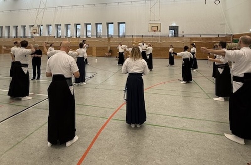 Der zweite Tag begann wieder mit der Mobilisierung des Schultergürtels und einem Vortrag zum Thema „Nobiai, Hanare und Zanshin“.