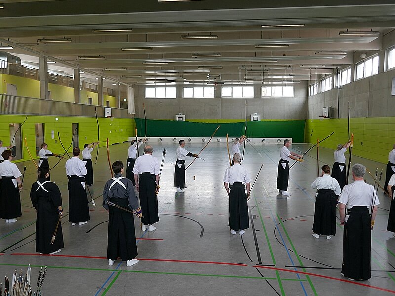 Mitte April finden in Frankfurt/Main Prüfungen zum 3. bis 6. Dan und Renshi statt. Daran werden ca. 200 Schützinnen und Schützen aus Deutschland teilnehmen. Für eine optimale Vorbereitung gibt es derzeit viele Seminare. So fand vergangenes Wochenende ein Bundeslehrgang im oberbayerischen Ingolstadt statt. Aufgrund des großen Interesses war ein paar Tage, nachdem die Ausschreibung verteilt wurde, die maximale Teilnehmerzahl bereits erreicht. So wurde nach Rücksprache mit den Lehrern Ingrid Haußner und Marco Zingsheim die Teilnehmerzahl auf 30 erhöht und der Beginn des Lehrgangs am Samstag um eine Stunde vorverlegt.