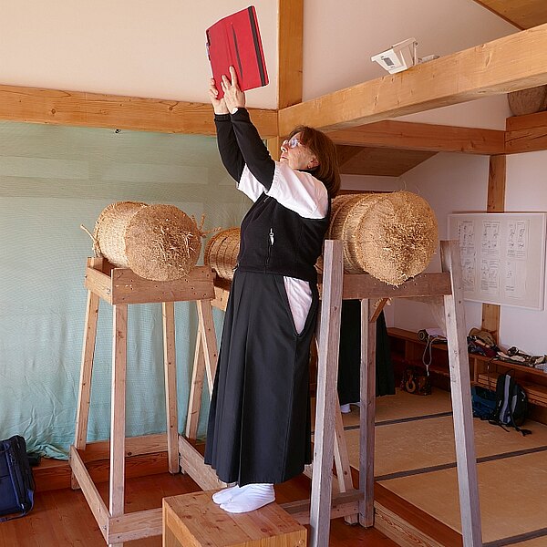 Der erste Tag stand im Zeichen von Technik, Taihai und deren Verfeinerung. Trainer Jurma stellte uns eine ungewöhnliche und zugleich sehr lehrreiche Aufgabe. Durch das Ziehen von Karten wurden die Teilnehmenden entweder als Schützinnen und Schützen einem von zwei Teams zugeordnet oder übernahmen die Rolle von Motivations- oder Technik Coaches. In dieser Konstellation traten die Teams gegeneinander an. Bewertet wurden sowohl das Schießen als auch das Taihai, das wir gegenseitig beobachteten. Die Situation kam einer realistischen Wettkampfsituation sehr nahe. Zunächst schoss ich selbst im Team und erlebte die Wirkung, direkter Unterstützung, durch einen Coach. Als ich später selbst diese Rolle übernahm, ergab sich ein deutlicher Perspektivwechsel. Das Beobachten von außen, schärfte unseren Blick dafür, wie Bewegungen wirken und welche Aspekte besonders ins Auge fielen. Besonders eindrücklich war für mich die Vielschichtigkeit der Coach- und Lehrerrolle. Es wurde deutlich, dass es nicht nur darum geht, technische Fehler zu erkennen, sondern sie so zu vermitteln, dass Vertrauen, Zusammenhalt und eine gemeinsame Ausrichtung entstehen können. Dabei zeigte sich, wie viel Verantwortung in dieser Rolle liegt und wie unmittelbar sie sowohl das eigene Schießen, als auch das Miteinander in der Gruppe beeinflusst. Diese Erfahrung ließ mich die Tiefe des Kyudo erneut erahnen.