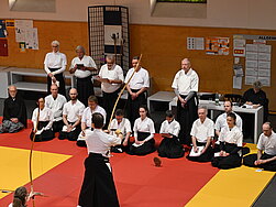 Bei den Vorträgen ging es vor allem um Neuigkeiten und Schwerpunkte, die dieses Jahr bei den IKyF-Seminaren in Magglingen vermittelt wurden. Eines der Themen war das tenouchi. Korrektes Ansetzen im yugamae, finale Positionierung im daisan, Kräfte im nobiai, hanare und zanshin.