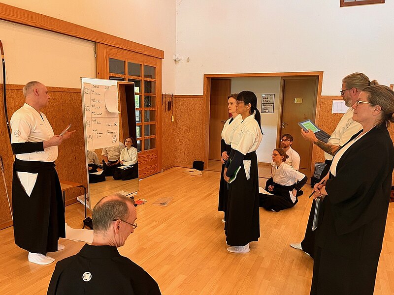 Ein besonderes Augenmerk lag darauf, die Verbindung zwischen persönlicher Kyudo-Praxis und der Rolle als Trainer*in zu reflektieren. In regen Austauschrunden wurde darüber gesprochen, wie sich Achtsamkeit, mentale Klarheit und innere Ruhe im Unterricht fördern lassen.