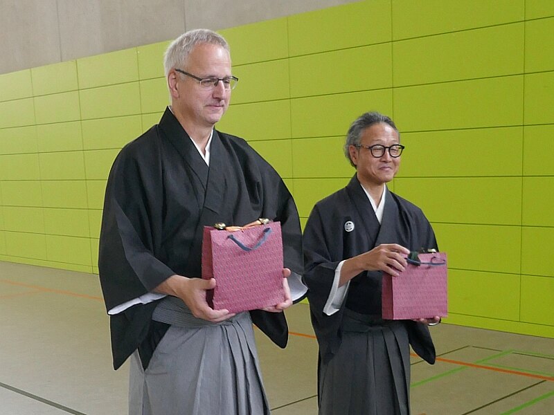 Da Satō sensei sehr häufig Seminare in Deutschland leitete und schon viele Lehrergeschenke erhielt, fiel es dem Ausrichter zunächst schwer, ein passendes Präsent zu finden. Aber Satō sensei ist ein Familien-Mensch, so dass er ein Geschenk für seine Frau erhielt. Bei Feliks Hoff und Thomas Baer war die Geschenkauswahl weniger schwierig, ihnen wurden einige geschätzte Lebensmittel überreicht.